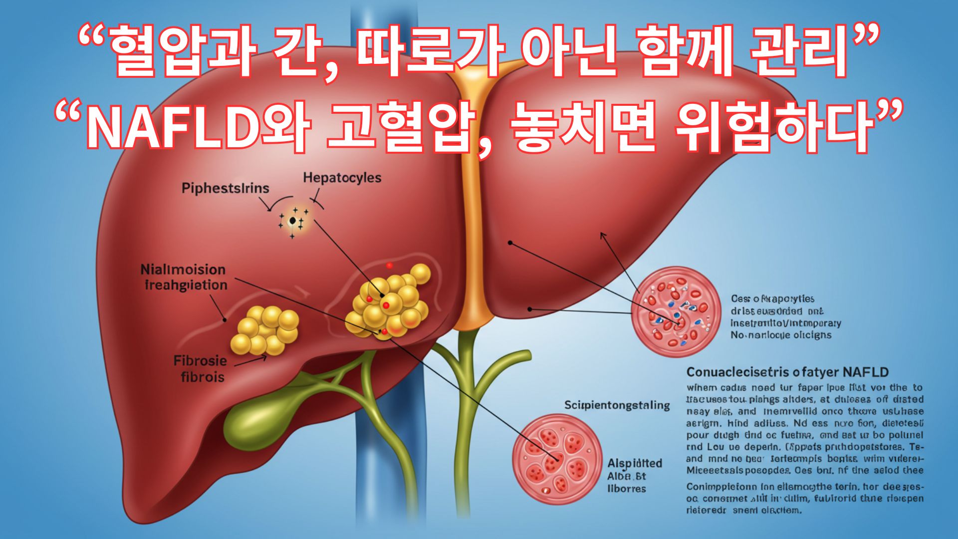 고혈압 환자에서 간 건강은 선택이 아니라 필수적 관리 대상입니다. 지방간을 방치하면 혈압은 더 높아지고, 반대로 혈압이 높으면 간 손상이 가속화됩니다. 두 질환을 동시에 관리하는 것이 심혈관 질환과 간 질환을 예방하는 가장 현명한 길입니다.