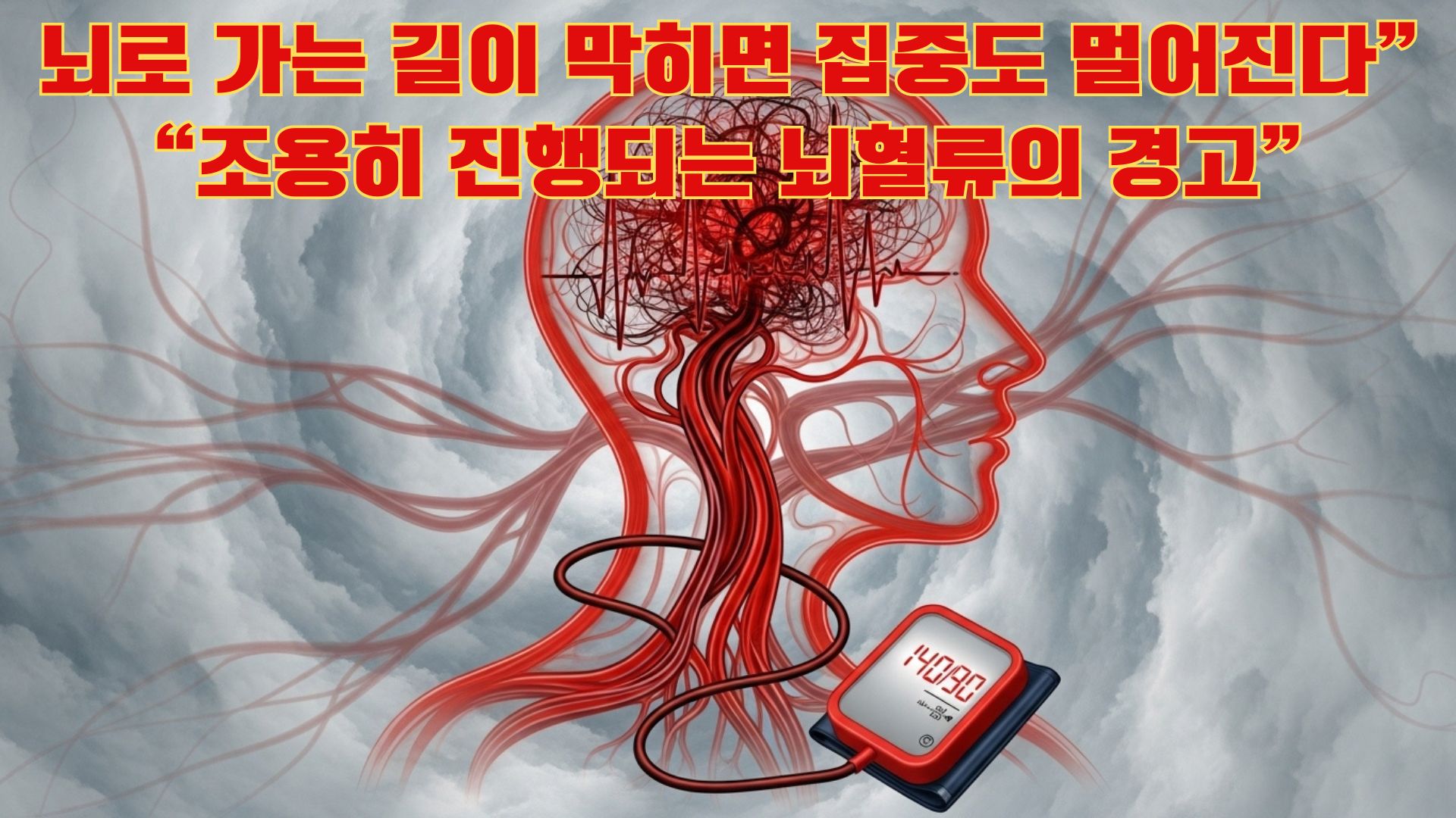 고혈압은 단순히 혈관이 좁아지고 심장이 부담을 받는 질환으로만 알려져 있지만, 그 영향은 두뇌(腦)까지 깊게 미칩니다. 지속적인 고혈압은 뇌혈관의 자율 조절 능력(autoregulation)을 손상시켜 혈류의 미세한 흐름이 불안정해지고, 그 결과 집중력 저하와 인지 기능 감퇴로 이어집니다.